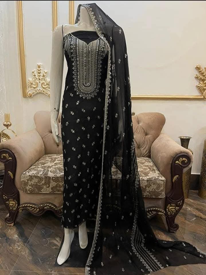 New & Stylish Party Wear Silver Embroidery along with Sequence Work